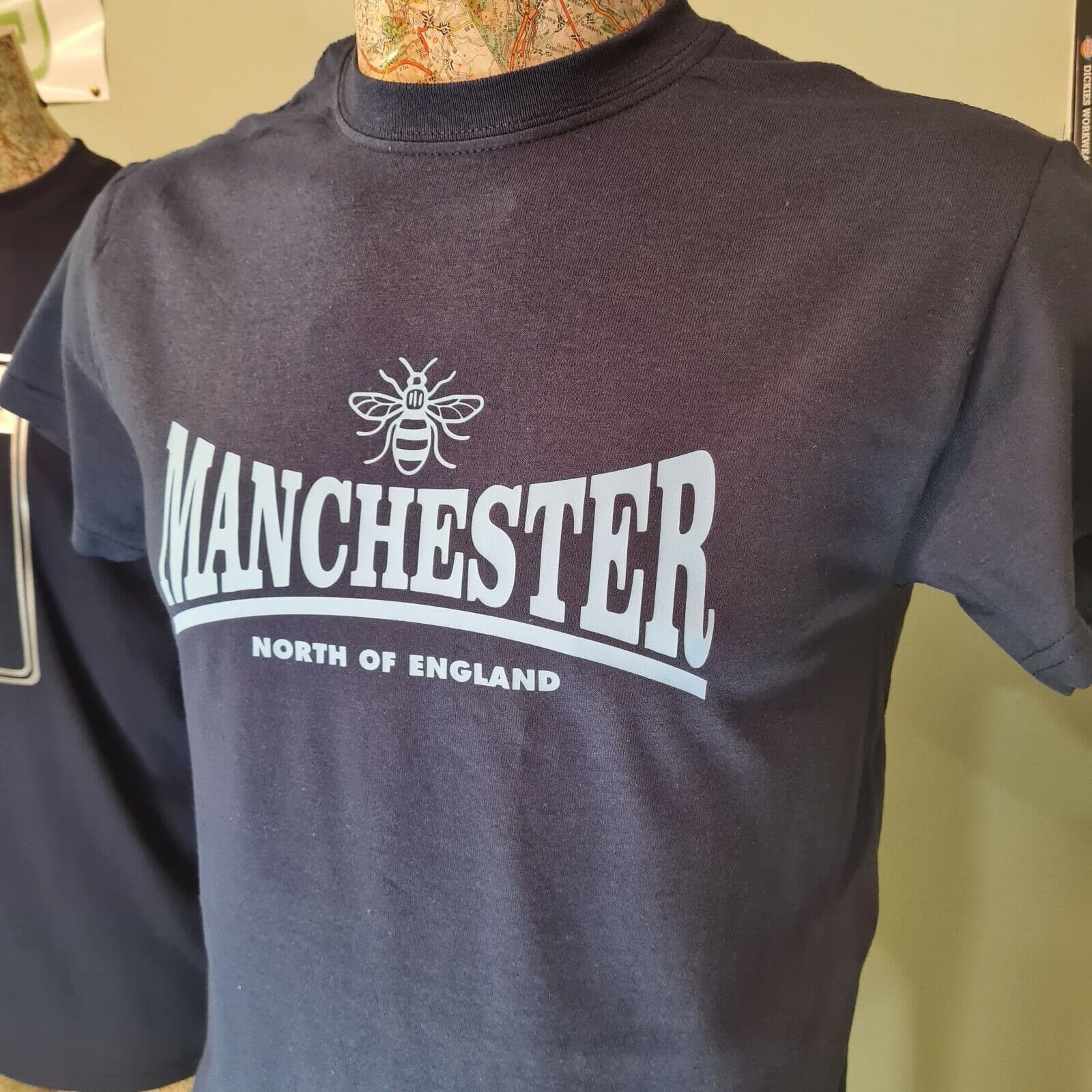 Manchester Working Bee tee t shirt navy and sky blue I love MCR City colours