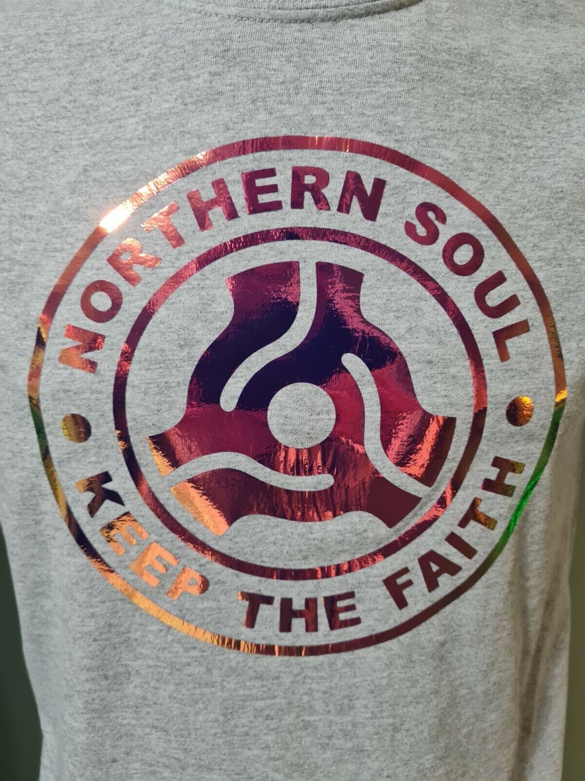 Northern Soul Keep the Faith Holographic logo tee t shirt Excellent gift