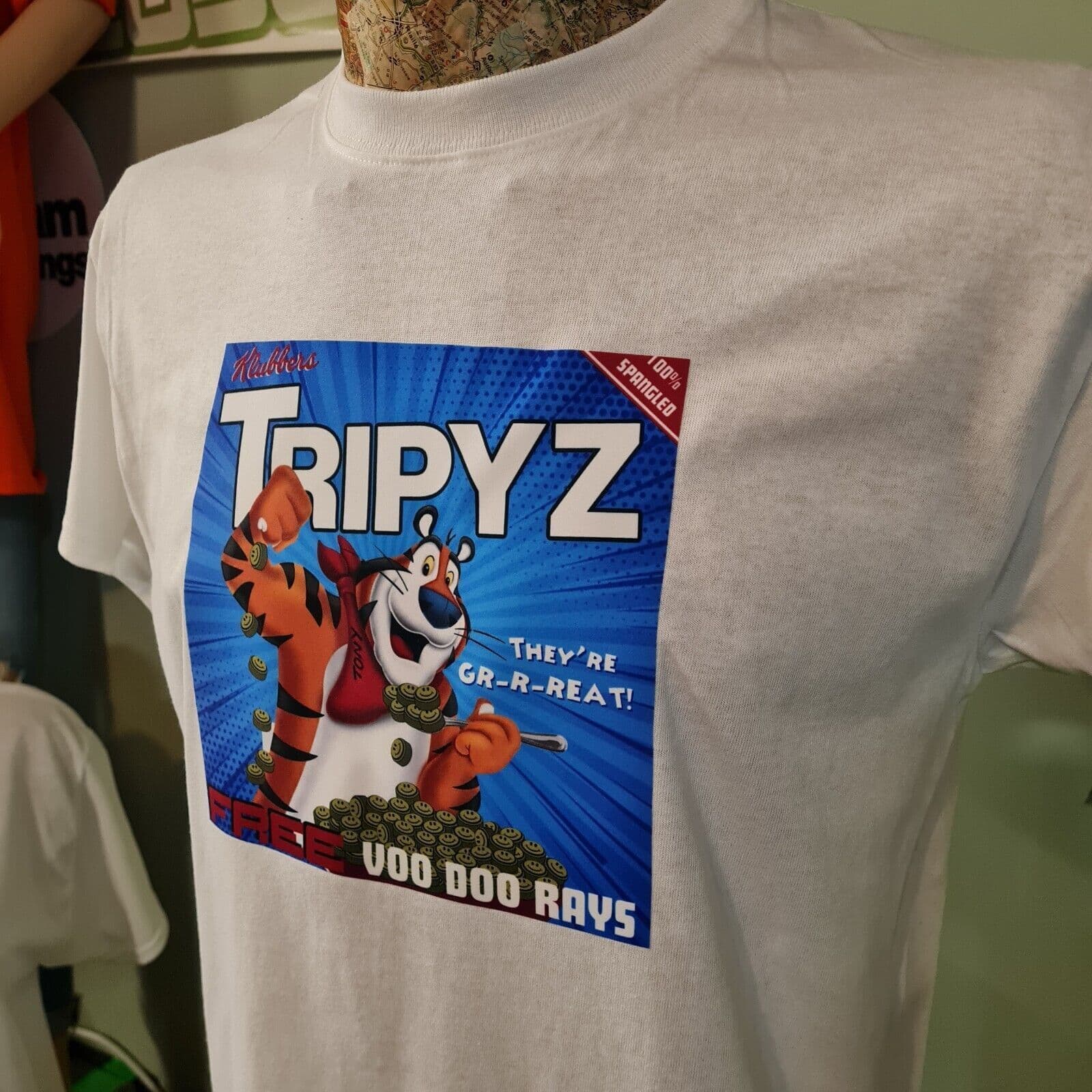 Tripyz Tiger Tee Shirt various colours Acid House Rave Flyer Voo Doo Rays